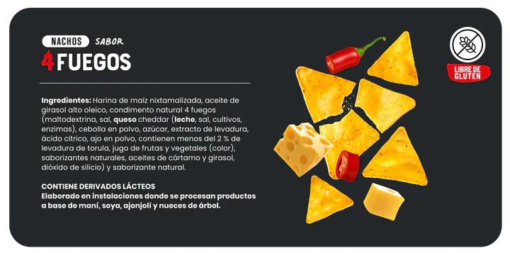 Los Nachos 4 Fuegos están pensados para quienes buscan un snack intenso, ideal para compartir, dipear o disfrutar directo de la bolsa.