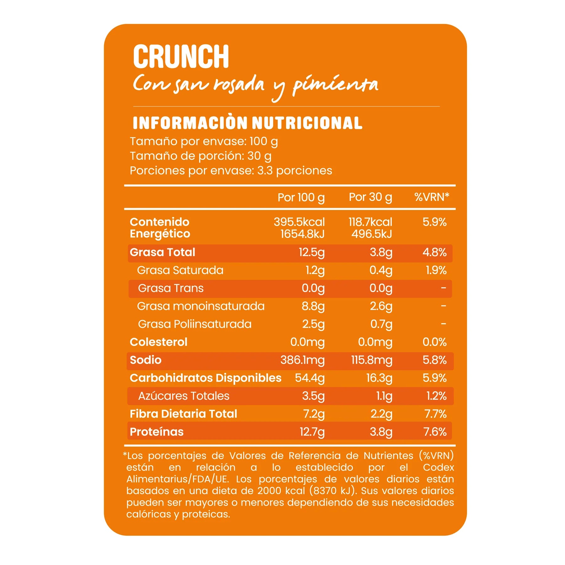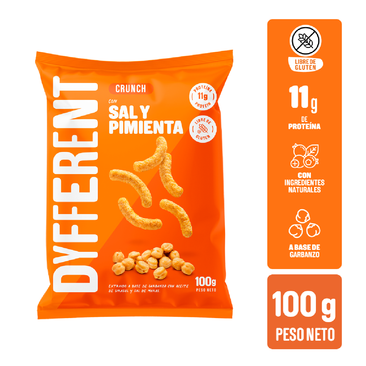 El Crunch de Garbanzo Sal Rosada y Pimienta combina la intensidad justa de la pimienta con sal rosada, resaltando el sabor natural del garbanzo en un snack crujiente, nutritivo y consciente.